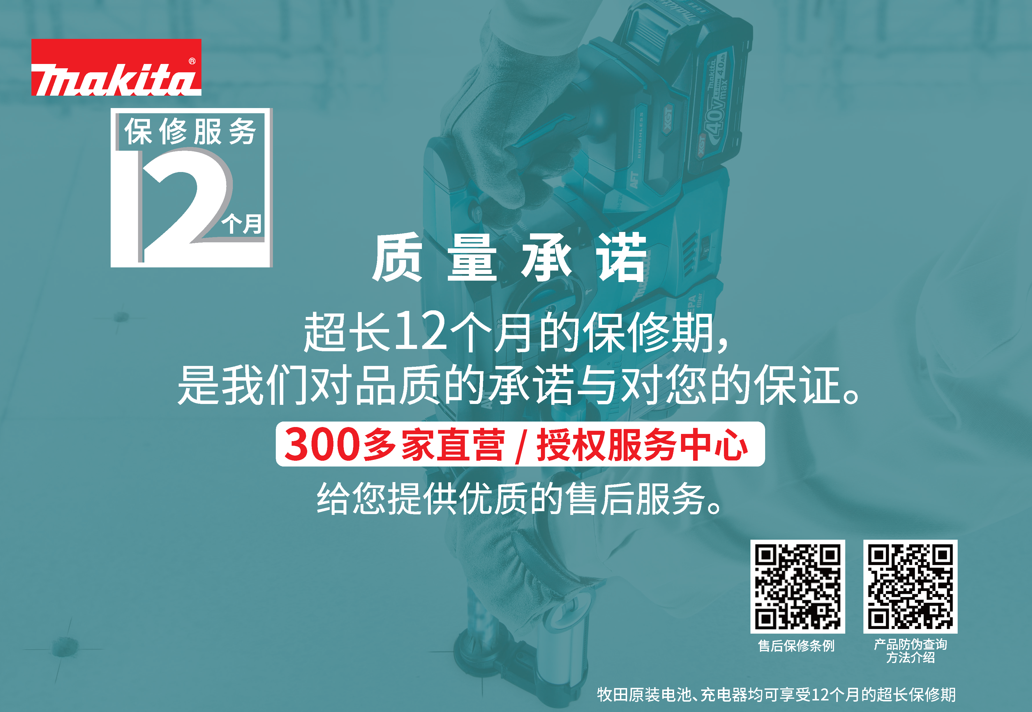 必須提供購買原廠產品的有效合法單據,單據上必須有銷售公司的名稱或蓋章;同時寫明所購牧田產品的型號全稱、機身銘牌上的制造號碼、購買單價、購買日期、同時提供要求保修的整機及其使用的配件。